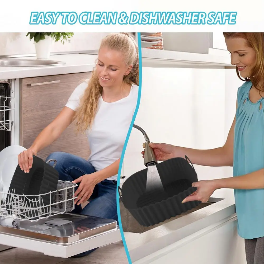 5.Optimize Space Efficiency: The stackable design of this air fryer liner allows for space-saving storage, with a flexible silicone build that resists damage and creasing during repeated use